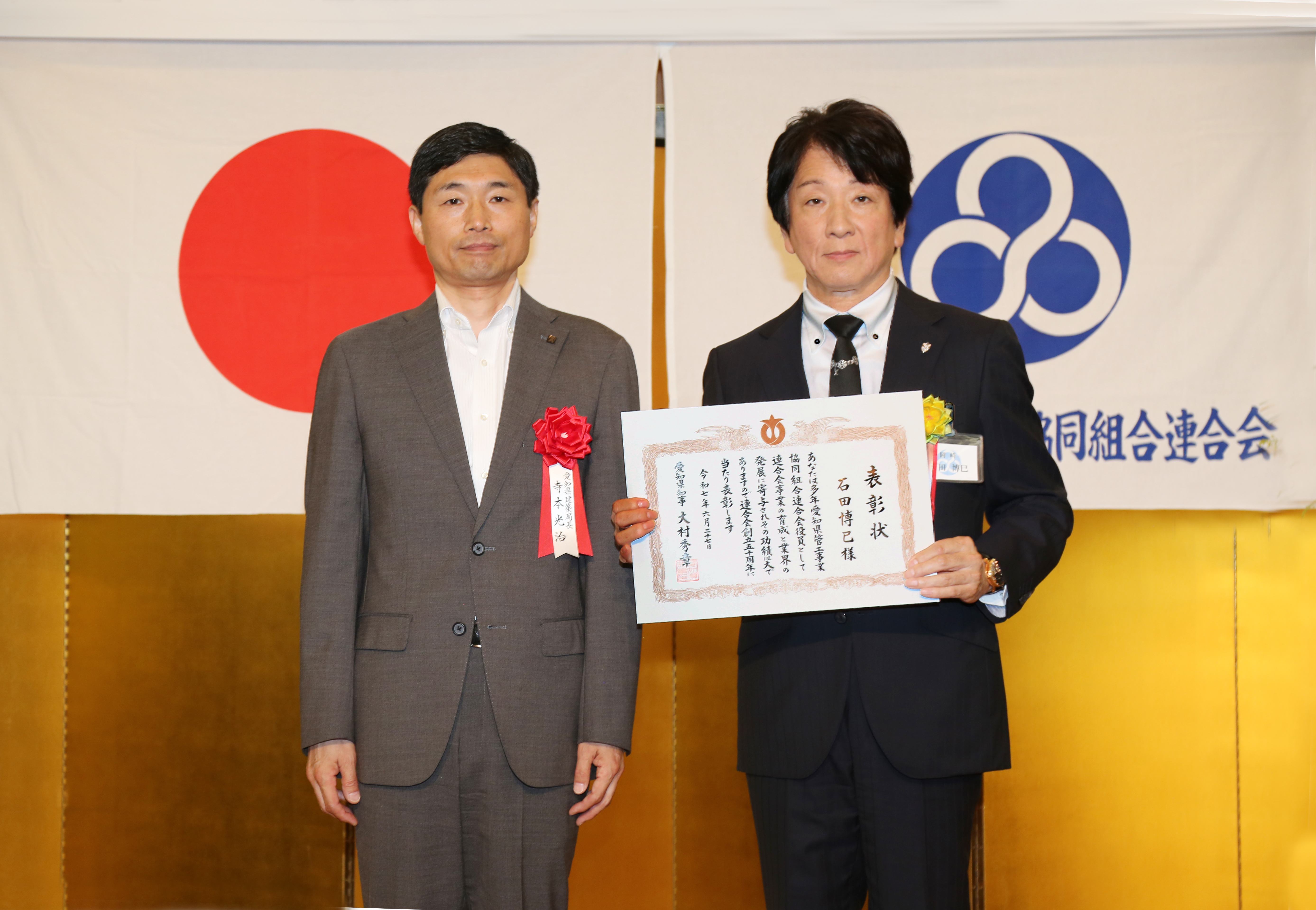 令和7年6月27日(金)に愛知県管工事業協同組合連合会創立50周年記念式典・祝賀会へ出席し、